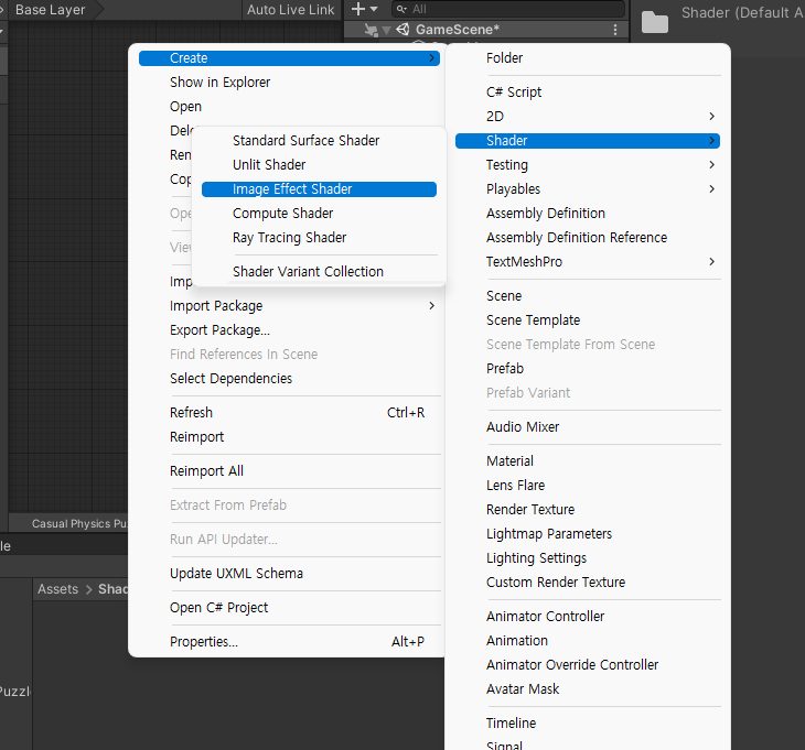 BlurShader를 드래그앤드랍하여 BlurMaterial에 떨어트려준다. 그럼 자동으로 적용된다.