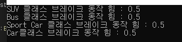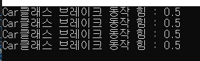 이렇게 되면 가장 아래 for문에서 Brake 가 호출 될 때 재정의된 함수가 동작한다.