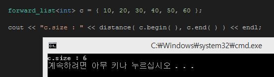 순방향 리스트의 크기를 알고싶다면 distance() 함수를 사용하자.