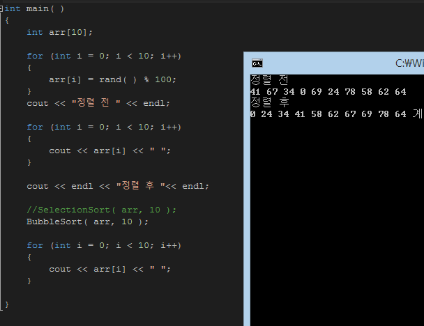 버블정렬의 수행시간(시간복잡도)은 O(n²)이다. 따라서 숫자가 적을 때만 사용하자.