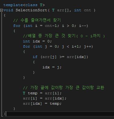 [Algorithm] Selection Sort : 선택 정렬, 선택 소트 ( 코드 포함 )