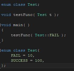 그런데 이 때 범위 없는 enum의 경우 정수형으로 결정해버리기 때문에 전방선언이 가능하다.
