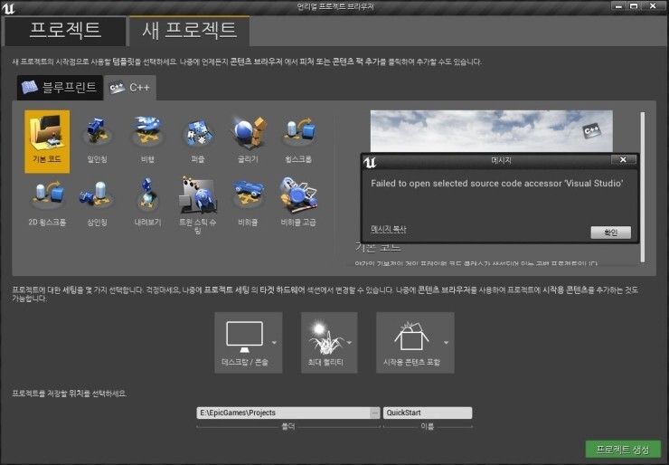 [Unreal]Failed to open selected source code accessor 'Visual Studio' 에러 발생 시