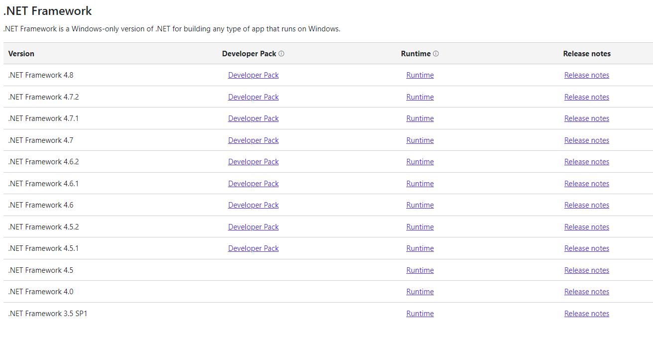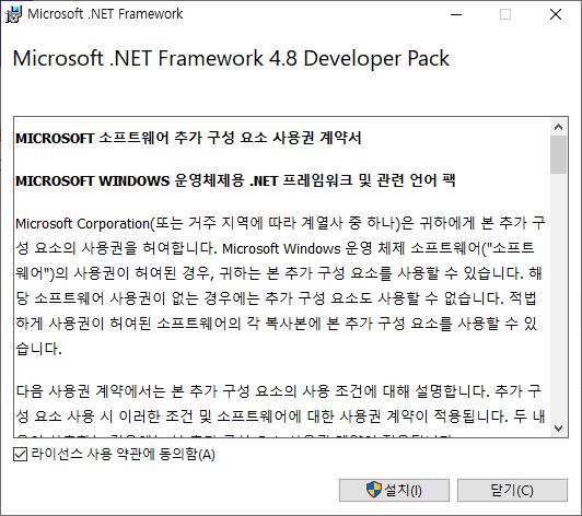에러가 발생했다. 대충 닷넷 프레임워크 버전이 낮아서 그런 것 같으니 닷넷 프레임워크 SDK 를 최신 버전으로 설치해보자.