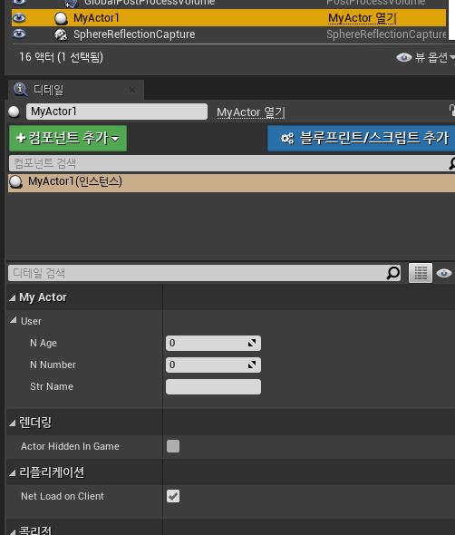 이렇게 추가하고 컴파일 한 다음 액터를 배치하고 디테일 창을 보면