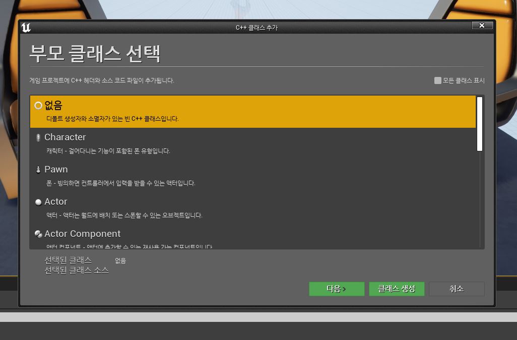 파일 - 새로운 C++ 클래스 - 없음 선택하고 클래스를 생성한다.