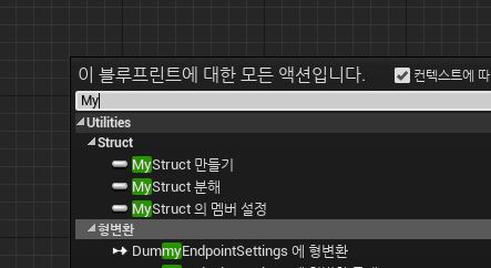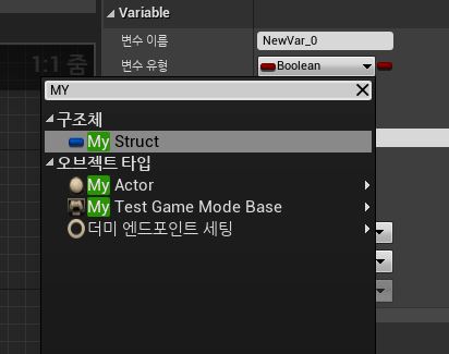 위 방법으로 만든 언리얼C++구조체는 언리얼 컨텐츠 브라우저에 나오지 않으며 액터 클래스에서 선언 후 사용이 가능하다.