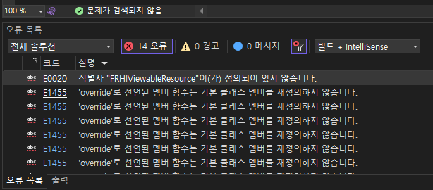 FRHIViewableResource가 정의되어 있지 않다고 하는데 이는 라이브 코딩과 서로 충돌되기 때문입니다.